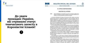 У «Boletín Oficial del Estado» (BOE) опубліковано наказ Міністерства внутрішніх справ Іспанії про автоматичне продовження терміну дії карток іноземця для осіб під тимчасовим захистом через
