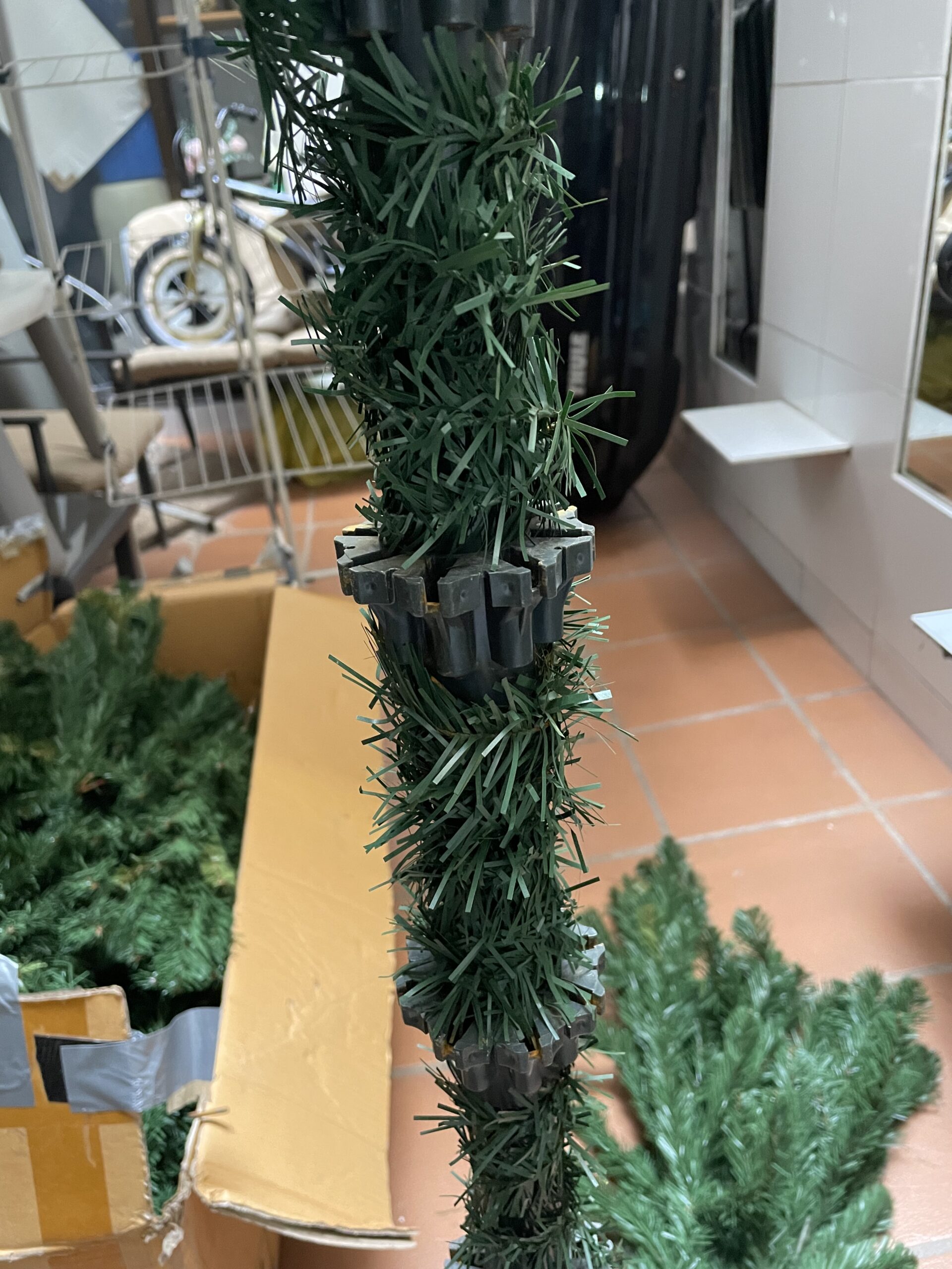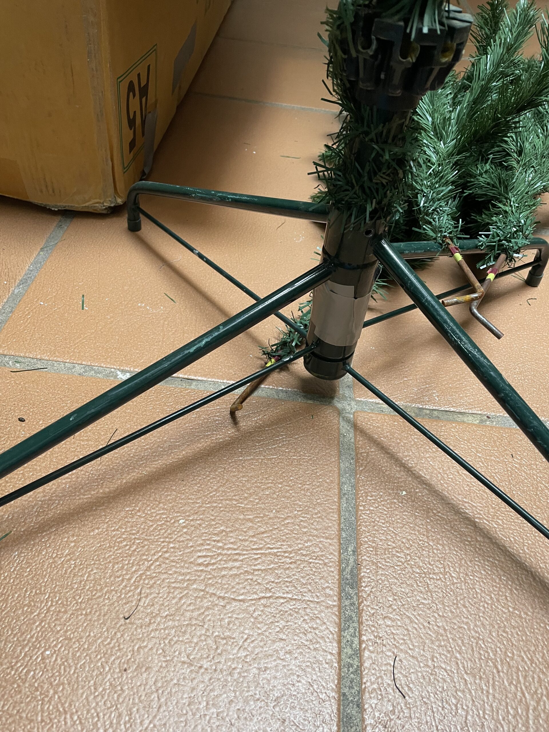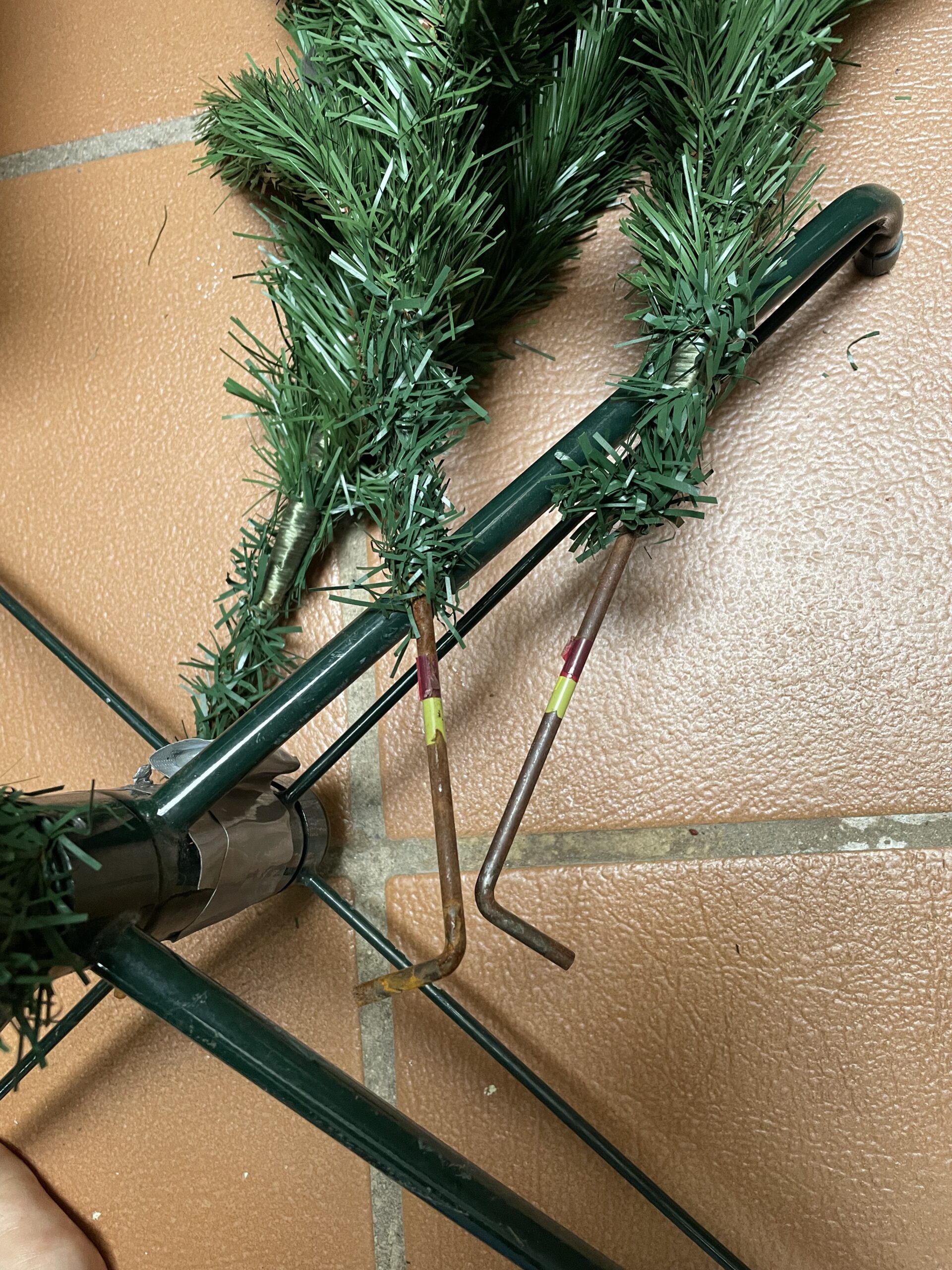 Ялинка 240 см Leroy Merlin. Метал внизу гілок окиснений, тому що ялинка стояла на терасі, але все дуже легко відчищається мокрою ганчіркою ( до прикладу до і після є на одному з фото)В загальному ялинка в хорошому стані.
